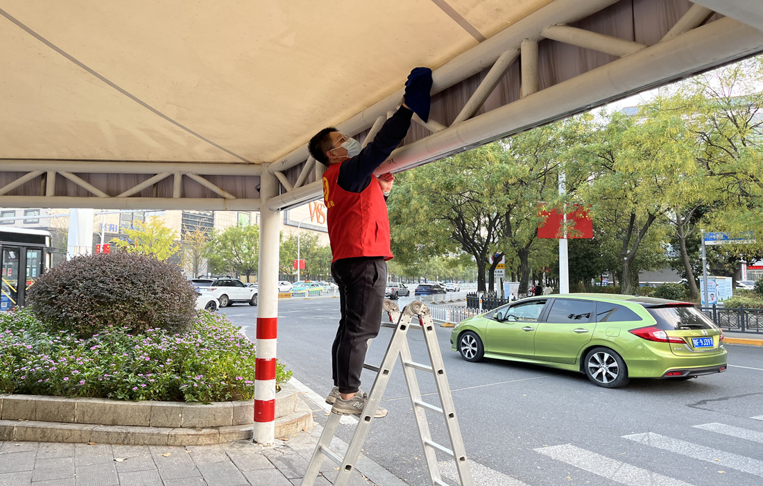 清洁遮阳棚 美丽襄阳城——汉江智行党支部开展洁城志愿服务活动